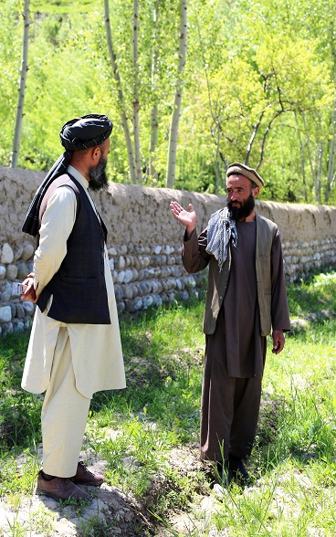 Mawlawi Abdul Qahar (L), head of Tolo Fruit Cooperative visiting the fruit nursery of Sarajuddin pictured (R) ©FDFA