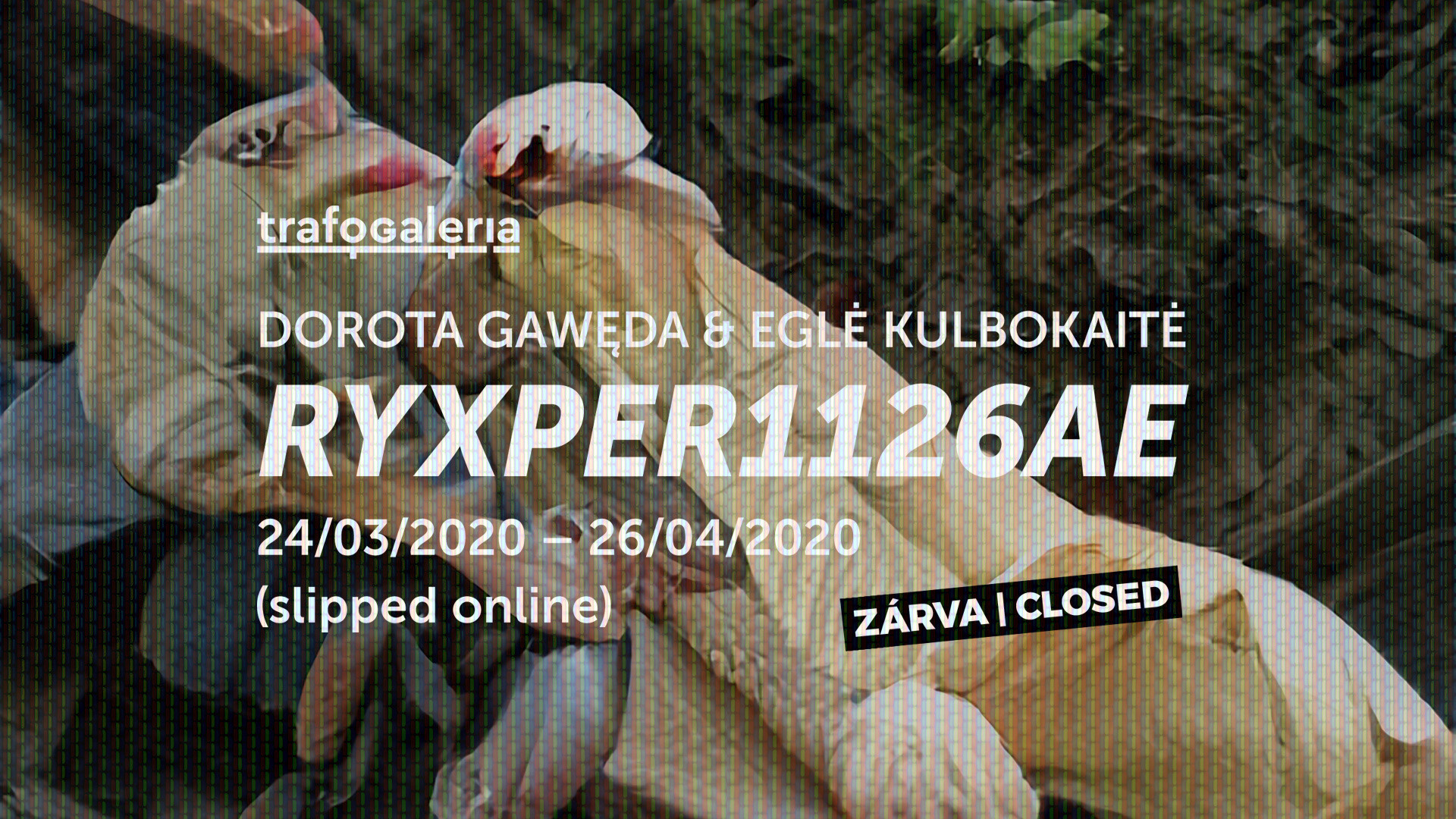 The exhibition RYXPER1126AE can be visited online between 24th of March and 26th of April, 2020 during our regular opening hours (all days, except Monday, from 4pm to 10pm) via this link.