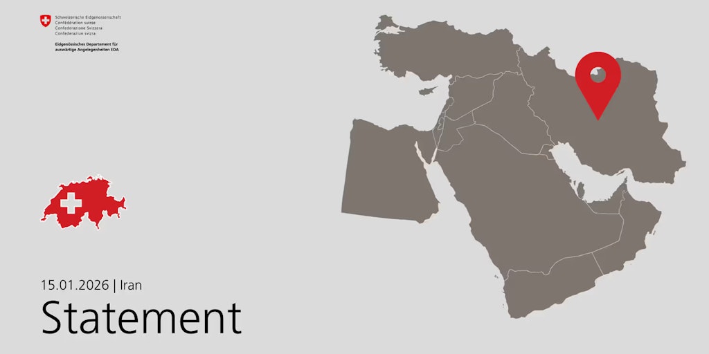Switzerland is following the situation in Iran with great concern and calls on the Iranian authorities to end the violence against demonstrators and to guarantee the human rights and fundamental freedoms of all protesters. During a meeting with the Iranian ambassador to Switzerland on 15 January 2026, Ambassador Monika Schmutz Kirgöz, head of the FDFA's Middle East and North Africa Division, officially protested against the excessive use of force by the Iranian authorities against demonstrators.