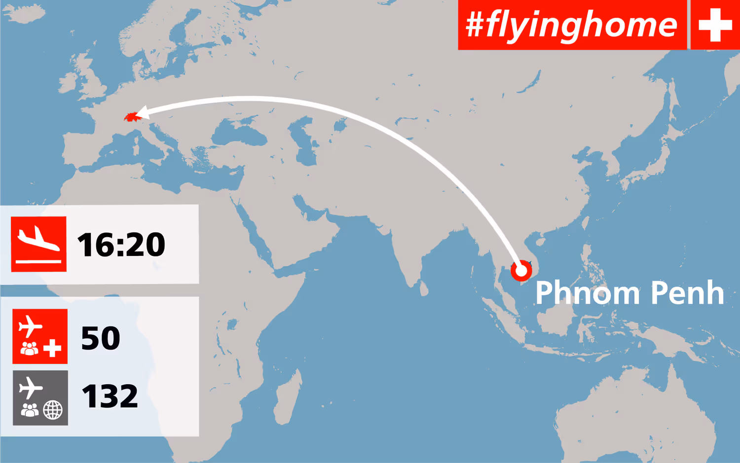 Venerdì pomeriggio è atterrato a Zurigo un aereo partito da Phnom Penh. A bordo c'erano 50 viaggiatori svizzeri e 132 passeggeri provenienti da altri Paesi europei. Quello dalla capitale cambogiana è stato il quarto volo di ritorno dall'Asia organizzato dal DFAE nell'ambito dell’operazione di rientro del DFAE.