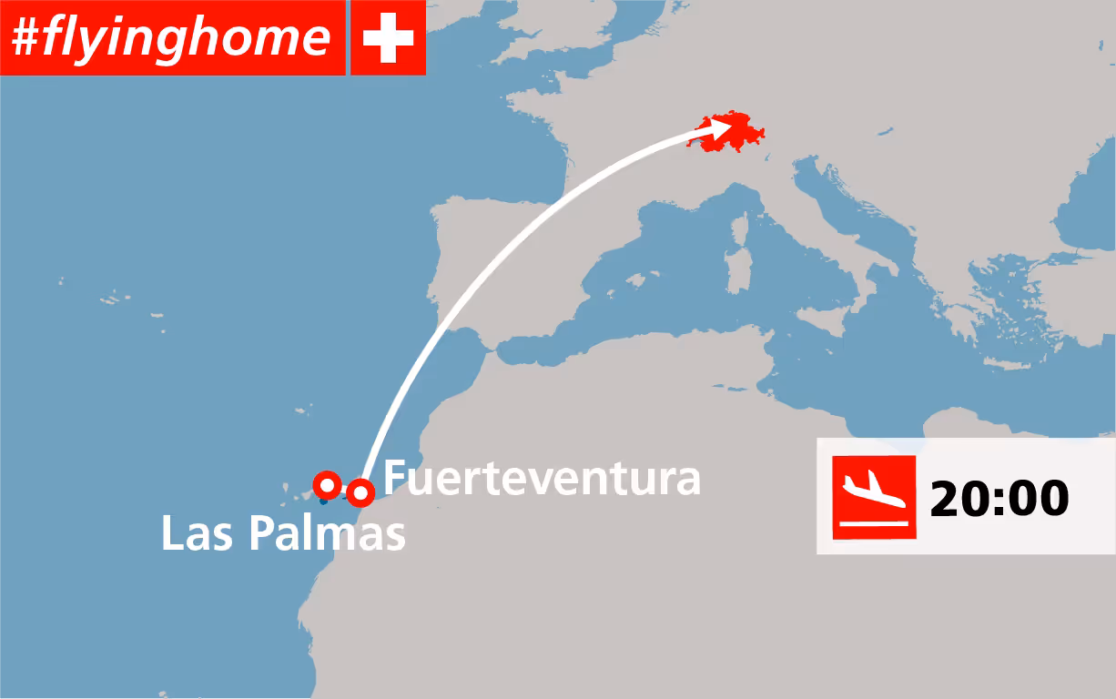 #flyinghome è la più grande operazione di rimpatrio di cittadini svizzeri nella storia della Confederazione. Il DFAE sta organizzando numerosi voli di ritorno in seguito all'epidemia di coronavirus che colpisce tutto il mondo nel primo trimestre del 2020.