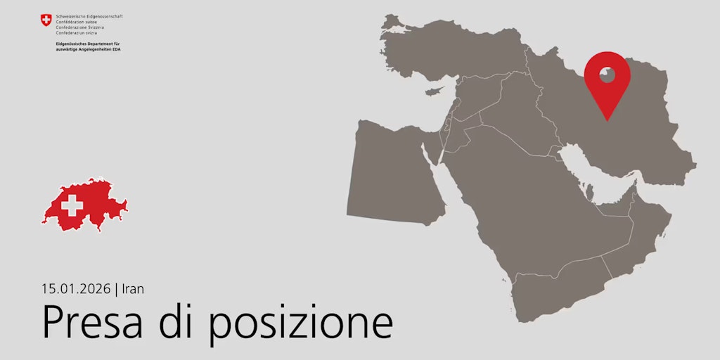 La Svizzera segue con grande preoccupazione la situazione in Iran ed esorta le autorità iraniane a porre fine alla violenza contro i manifestanti e a garantire i diritti umani e le libertà fondamentali di tutti i manifestanti. In occasione di un incontro con l'ambasciatore iraniano in Svizzera il 15 gennaio 2026, l'ambasciatrice Monika Schmutz Kirgöz, capo della Divisione Medio Oriente e Nord Africa del DFAE, ha protestato ufficialmente contro l'uso eccessivo della forza da parte delle autorità iraniane nei confronti dei manifestanti.