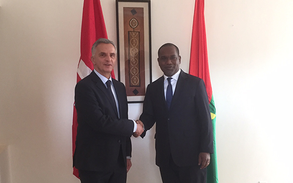 Federal Councillor Didier Burkhalter is meeting with Foreign Minister of Burkina Faso Mamadou Alpha Barry. © FDFA
