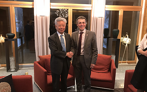 Le conseiller fédéral Ignazio Cassis rencontre M. LJin Liqun, président de la Banque asiatique d'investissement pour les infrastructures. © DFAE