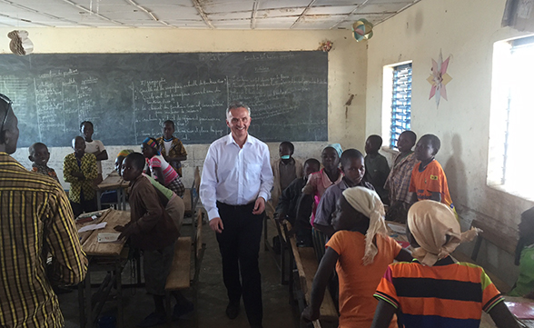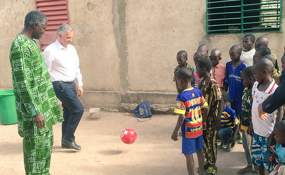 Le conseiller fédéral visite, dans la région de Ouagadougou, deux écoles assurant une formation de base aux enfants burkinabés et bénéficiant du soutien de la Suisse. © DFAE