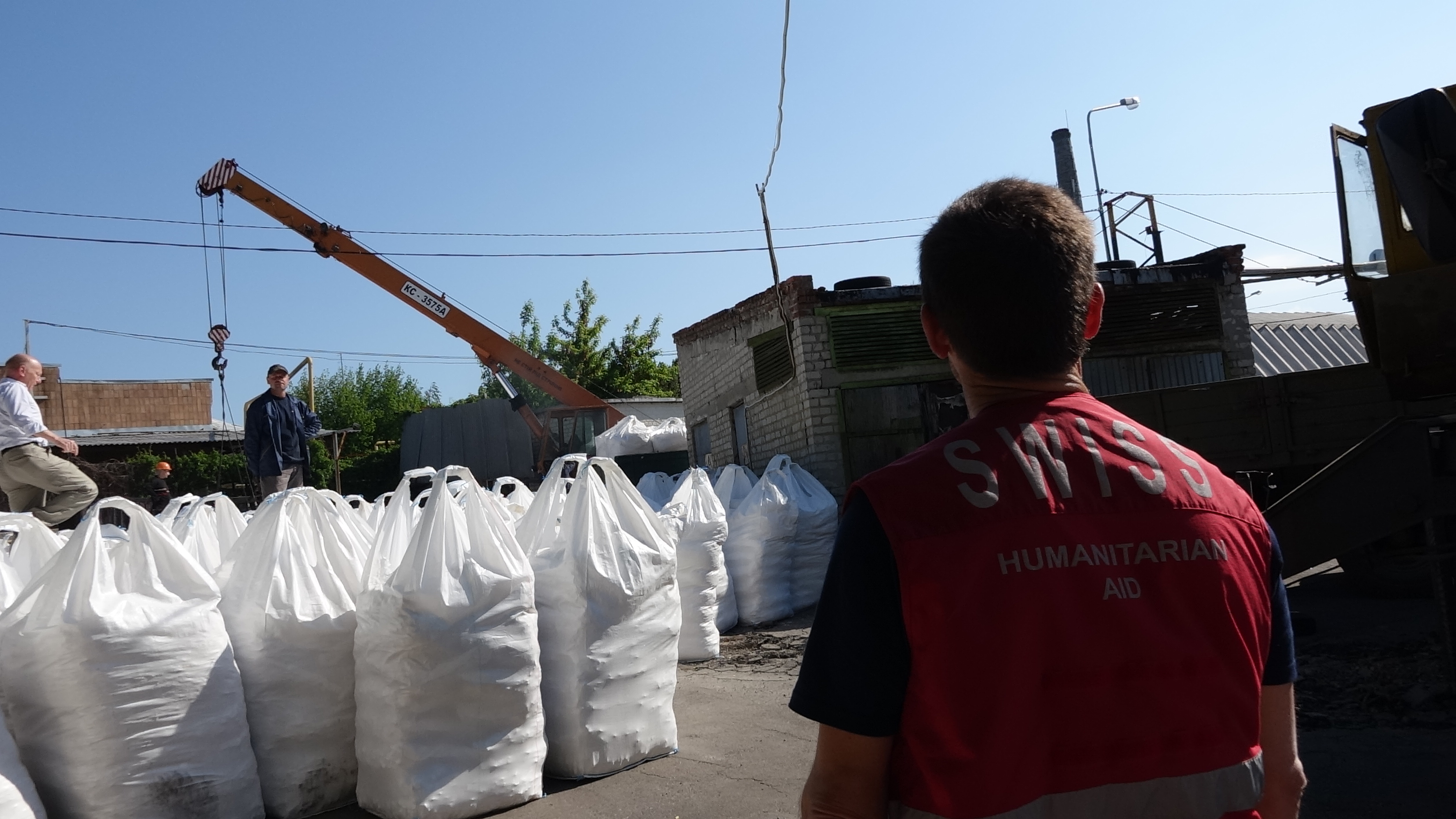 15.05.2015 – IL convoglio dell’aiuto umanitario svizzero per gli abitanti dell’Ucraina orientale raggiunge Donetsk. La Svizzera ha inviato un 300 tonnellate di prodotti chimici per depurare l’acqua. © DFAE