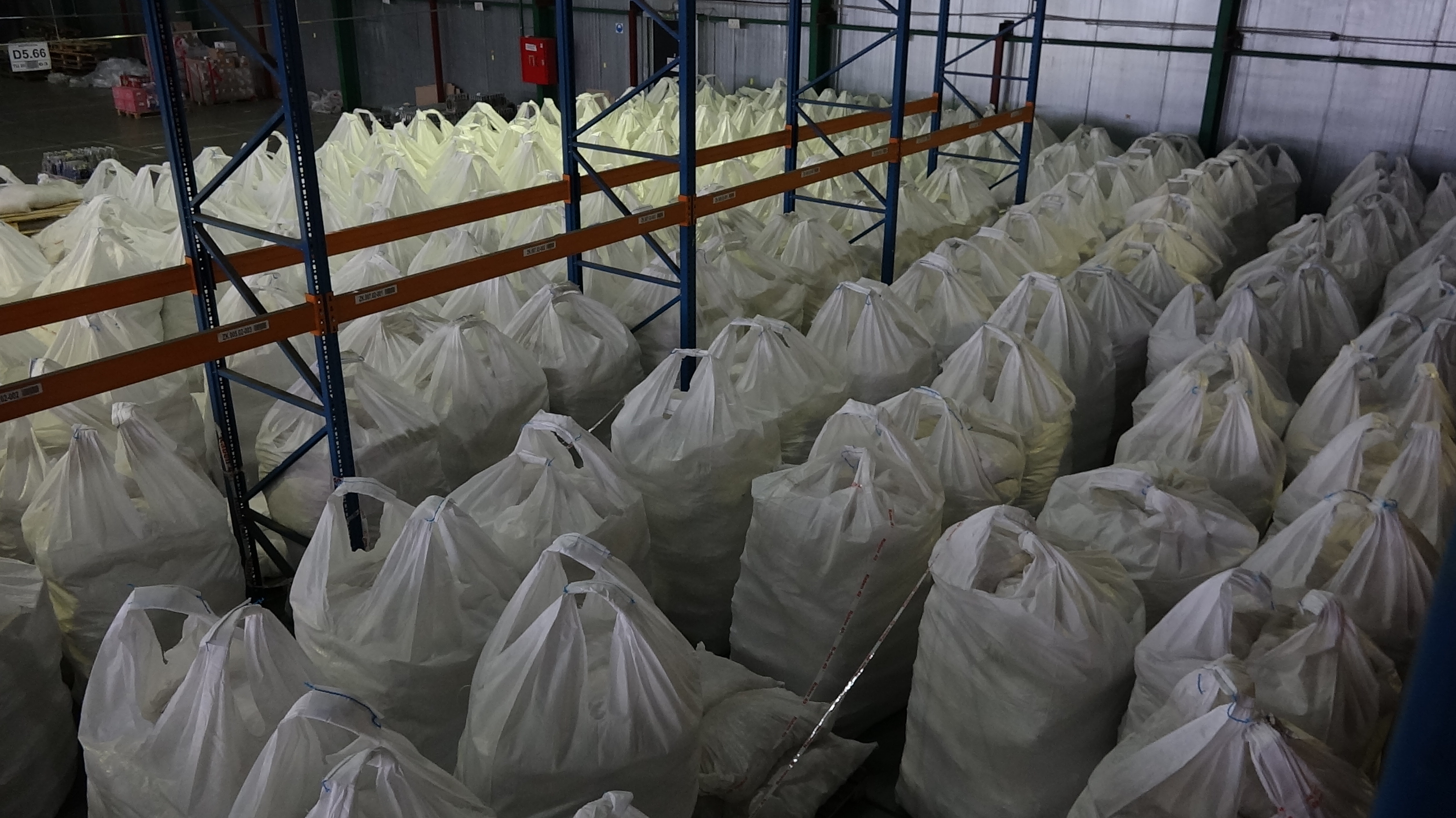 Questi sacchi pieni di solfato d'alluminio sono stati trasportati nell'Ucraina orientale. © DSC © DFAE